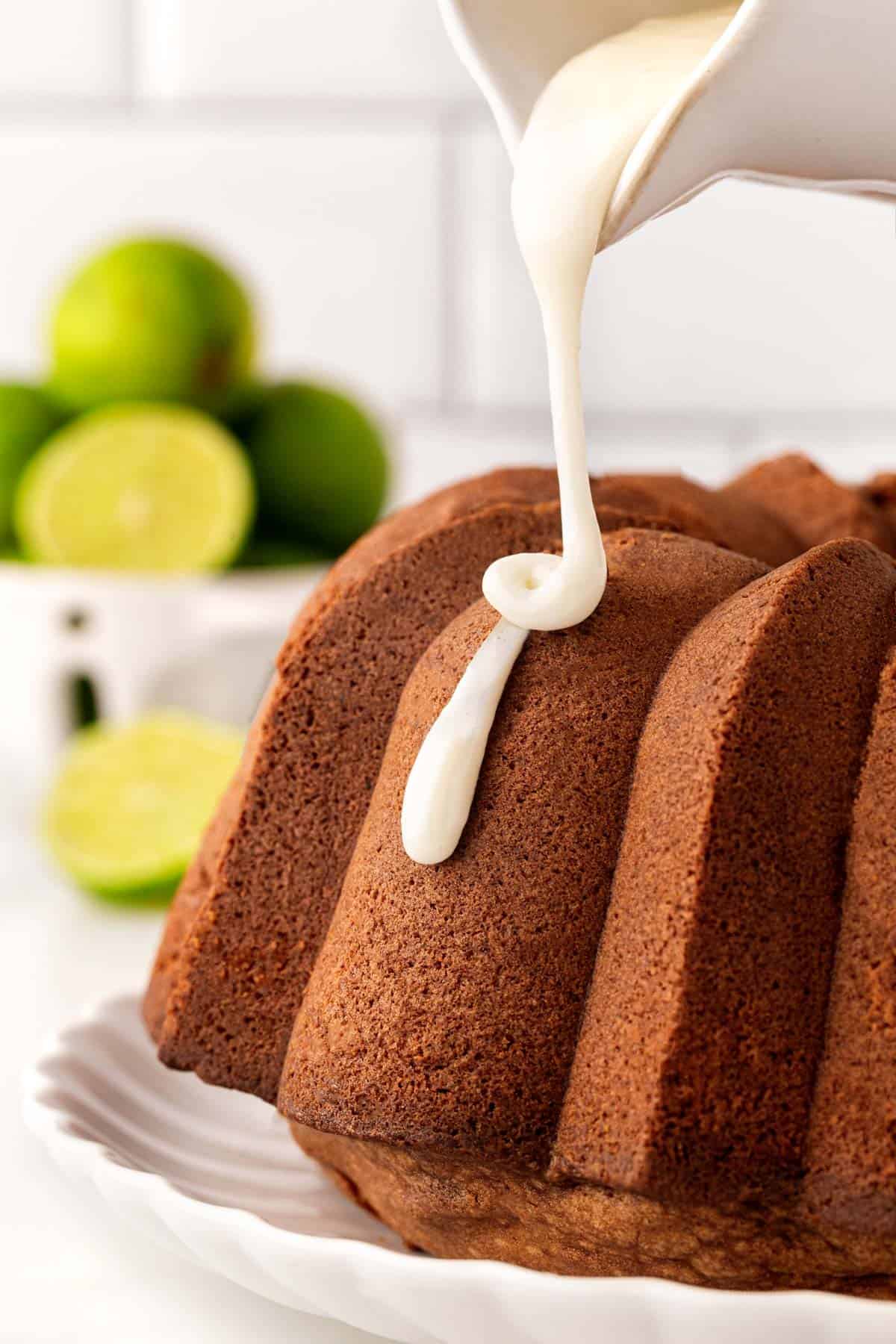 6. Pour the glaze over your cooled key lime pound cake