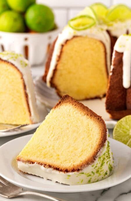 This Key Lime Cake Recipe is a perfect balance of sweet and tart just like a key lime pie! Each moist and tender yet dense bite is packed with citrus flavor then topped with a delicious cream cheese glaze.